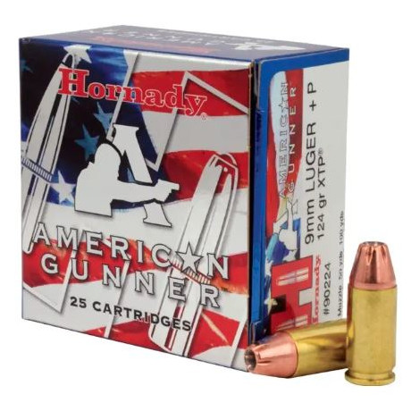 Box of 25rds. 9mm Luger +P 124gr. XTP American Gunner